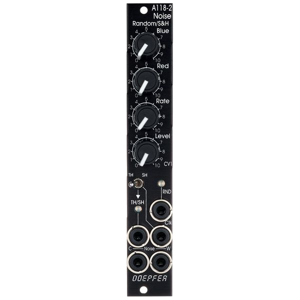 The Doepfer A-118-2 is a slim 4HP analog module that generates noise and random control voltages, ideal for modulation and textural audio sources. This Vintage Edition features a black panel with white printing and compact design for tight systems.