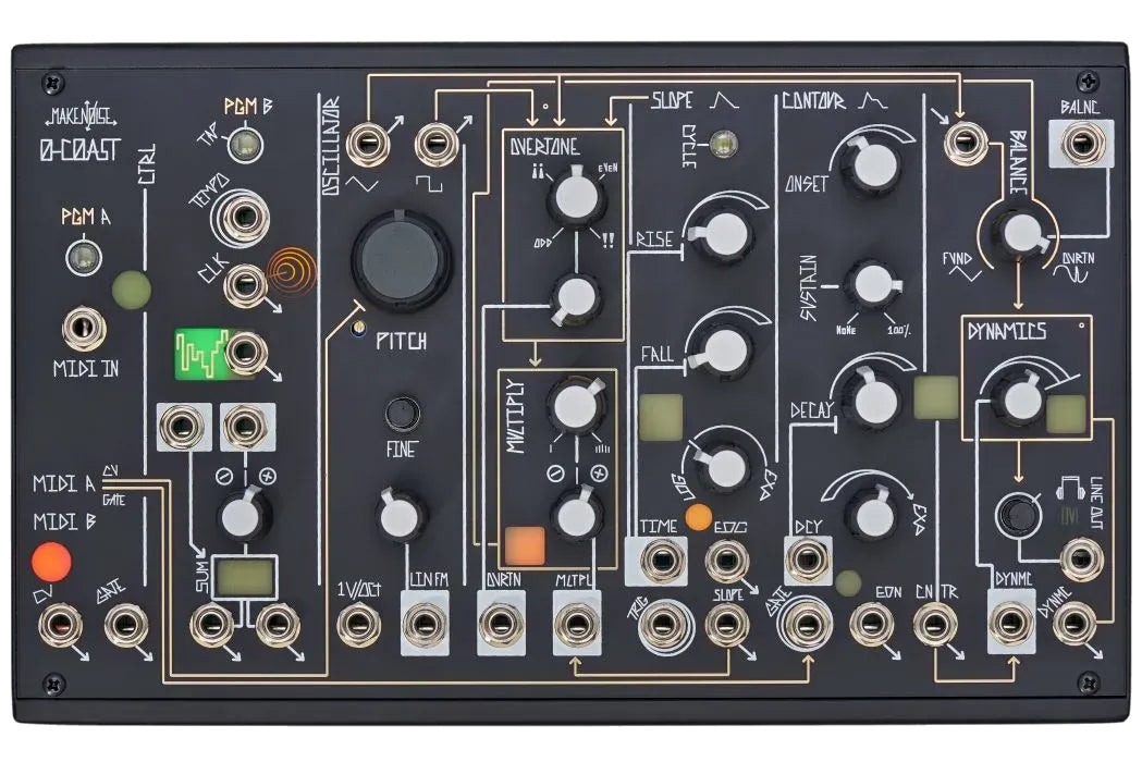 Make Noise 0-Coast is an innovative analog semi-modular desktop synthesizer that fluidly blends elements from both East Coast and West Coast synthesis philosophies.
