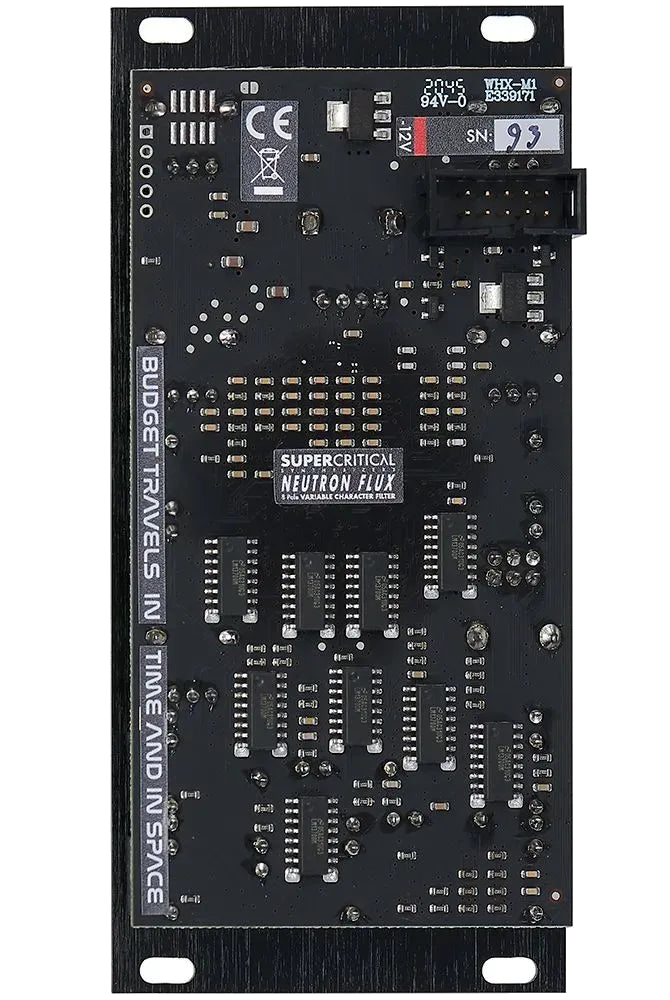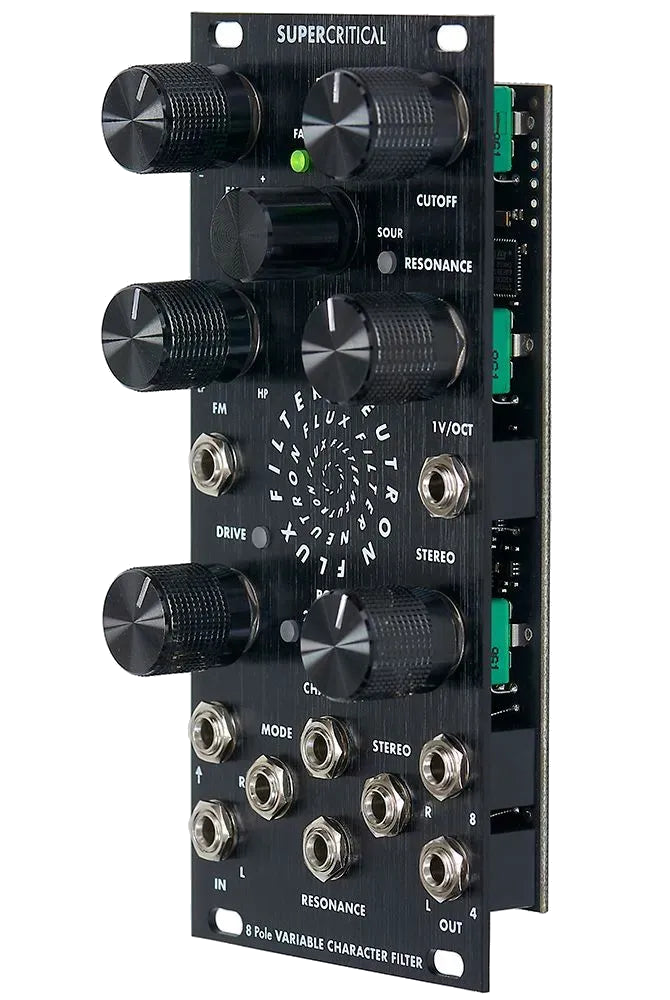The Neutron Flux Filter by Supercritical Synthesizers is a digitally controlled analog stereo filter that redefines what a filter can be in Eurorack. Whether you're after creamy vintage warmth or razor-sharp modern resonance, the Neutron Flux adapts with a twist of its digital brain and analog heart.