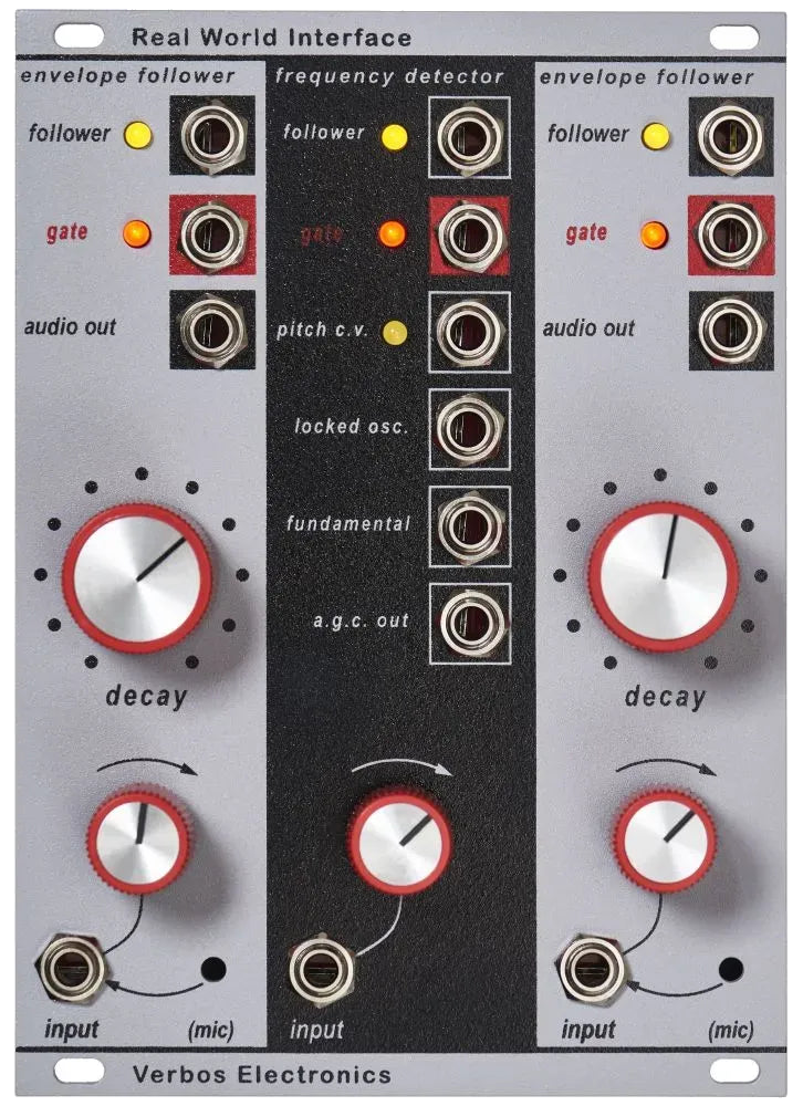 The Real World Interface from Verbos Electronics connects your Eurorack system to the outside world, converting audio and environmental signals into modular-level CV and audio. Designed to interact with acoustic sources, field recordings, or any external signal, it bridges the gap between reality and synthesis, making your modular system truly expressive and responsive to the world around it.